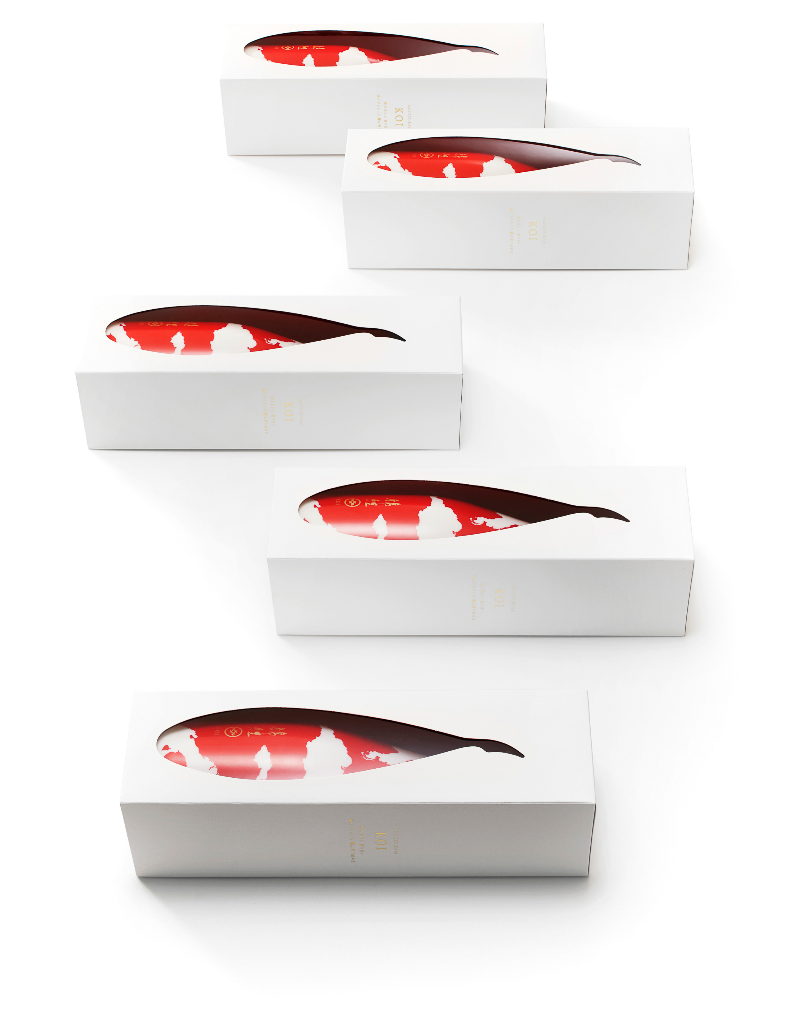 「錦鯉」シリーズはボトル自体が錦鯉を表現しており、魚形の窓がついた専用箱に入れることで、“錦鯉を観賞”できるデザイン。ドイツ「iF Design Award」や日本のグッドデザイン賞をはじめ、世界中で20以上のデザイン賞を受賞しています。